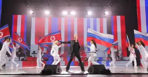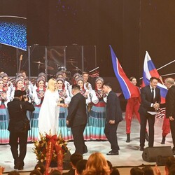 На сцені театру “Мансуде” в Пхеньяні виступили артисти балетного ансамблю Алли Духової “Тодес”, колектив Державного академічного російського народного хору імені П’ятницького, Ансамбль пісні і танцю Повітряно-космічних сил Російської Федерації, а також російський виконавець Shaman. Наприкінці дійства диктатор з усмішкою привітав співака, подякував запрошеним та передав їм корзину з квітами.