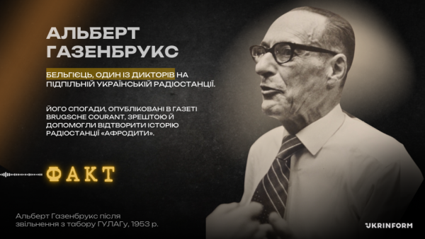 Історія «Афродіти» має ще чимало вражаючих епізодів. Але завжди згадують про диктора-іноземця на підпільній українській радіостанції, бельгійця Альберта Газенбрукса. Він вів передачі англійською та французькою мовами. Після руйнування схрону, звідки мовила радіостанція, Альберт врятувався, але його заарештували. 8 років відбув бельгієць у Сибіру у ГУЛАГу, а після смерті Сталіна був повернений додому. Саме він залишив нам спогади про діяльність радіо Афродита.