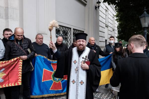 Підкреслюється, що перед від’їздом зі Львова паломників-захисників поблагословили священнослужителі ПЦУ.