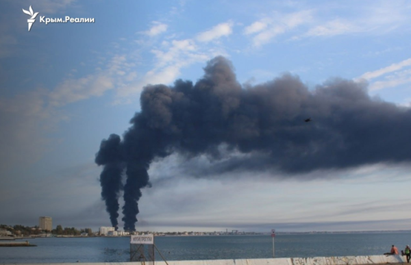 Місцеві Telegram-канали активно поширюють кадри з Феодосії, над якими піднімаються величезні стовпи диму.