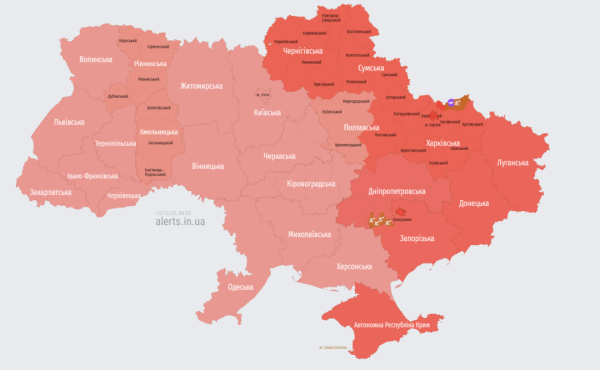Про це інформує Укрінформ, посилаючись на Повітряні сили в Телеграм-каналі та оновлену карту повітряних тривог.