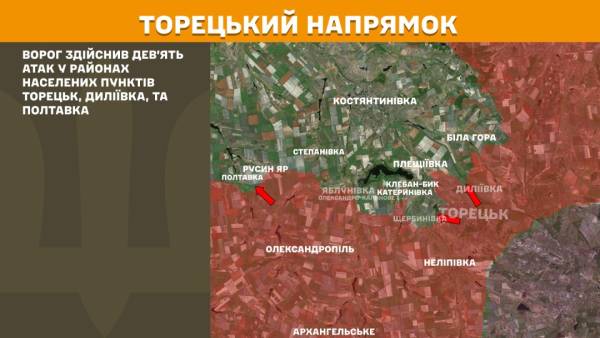 На Торецькому напрямку ворог здійснив дев'ять штурмів у районах Торецька, Діліївки та Полтавки.
