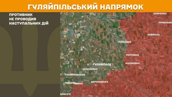 На Гуляйпільському напрямку минулої доби противник не здійснював наступальних операцій.